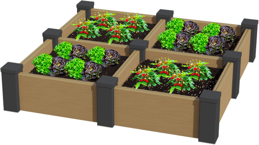 Le Mini² est un carré potager compact et élégant, divisé en quatre compartiments de 50×50 cm, parfait pour une culture variée et ordonnée de légumes, herbes aromatiques et fleurs.