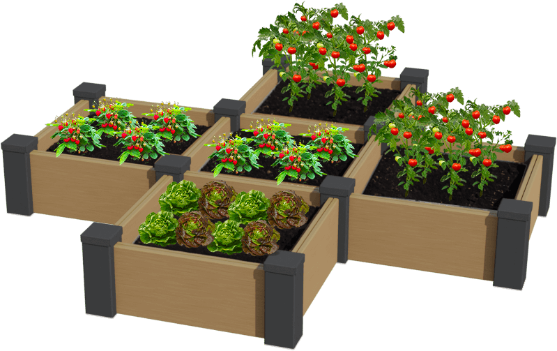 Le Mini² est un carré potager compact et élégant, divisé en cinq compartiments de 50×50 cm, idéal pour une culture variée et organisée.